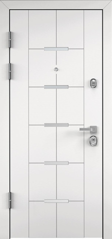 Белая входная дверь стандартная №36 идеально подходит для тех, кто ищет простоту и надежность. Внешняя и внутренняя отделка из МДФ накладки придает дверям элегантный и современный вид, сочетая прочность и долговечность. Материал отделки отличается устойчивостью к механическим повреждениям и воздействию внешней среды, сохраняя при этом привлекательный внешний вид. Каркас из профильной трубы с толщиной металла 2 мм и ребра жесткости гарантируют необходимую прочность и безопасность, а блокираторы обеспечивают дополнительную защиту. Входная дверь оснащена двухконтурным резиновым уплотнителем, что помогает сохранять тепло и защищать от внешних шумов. Замки модели Просам и Мосрентген с тремя ригелями обеспечат надежную защиту вашего дома или офиса. Дверь также может быть дополнена зеркалом, стеклопакетами и коваными элементами, а также оснащена видеодомофоном, что делает модель №36 универсальным решением для любых нужд. Белая входная дверь стандартная №36 от производителя: быстрое изготовление и монтаж в Лыткарино, индивидуальные размеры, широкий выбор материалов и фурнитуры, официальная гарантия до 10 лет.