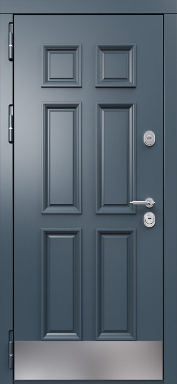 Дверь стальная МДФ эмаль №563 — это удачное сочетание надежной металлической основы и аккуратной декоративной отделки. Каркас из профильной трубы и стальной лист толщиной 2 мм обеспечивают прочность и устойчивость к взлому, а ребра жесткости повышают общий ресурс эксплуатации. Важной особенностью модели является наличие терморазрыва в коробке и полотне: конструкция эффективно препятствует промерзанию зимой, исключает появление конденсата и сохраняет тепло в помещении. Панели МДФ с ПВХ-покрытием, использованные с обеих сторон, защищены от влаги и мелких механических повреждений, благодаря чему дверь долго сохраняет привлекательный внешний вид. Два контура резинового уплотнителя дополнительно усиливают защиту от сквозняков и уличного шума. Такая дверь органично подходит для частных домов, квартир и офисов, сочетая в себе надежность стали и практичность современной отделки. Дверь стальная МДФ эмаль №563 от производителя: быстрое изготовление и монтаж в Лыткарино, индивидуальные размеры, широкий выбор материалов и фурнитуры, официальная гарантия до 10 лет.