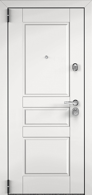 Белая металлическая дверь входная для дома №33 выделяется своим свежим и современным обликом. Универсальный белый цвет делает её уместной как в частном коттедже, так и в квартире или офисе, визуально добавляя простора и подчеркивая аккуратность фасада или интерьера. Конструкция двери основана на стальном листе толщиной 2 мм и усилена профильными трубами, что гарантирует надежность и устойчивость к нагрузкам. Важная особенность модели — наличие терморазрыва в полотне и коробке: благодаря этому дверь не промерзает в зимний период, исключается конденсат и сохраняется комфорт внутри помещения. Внешняя и внутренняя отделка выполнена из МДФ с ПВХ-покрытием, которое защищает поверхность от влаги и механических повреждений, сохраняя первозданный вид надолго. Два контура уплотнителя обеспечивают герметичность и дополнительную защиту от сквозняков. Эта дверь удачно сочетает эстетику и практичность, создавая надежный вход в любое жилище. Белая металлическая дверь входная для дома №33 от производителя: быстрое изготовление и монтаж в Лыткарино, индивидуальные размеры, широкий выбор материалов и фурнитуры, официальная гарантия до 10 лет.