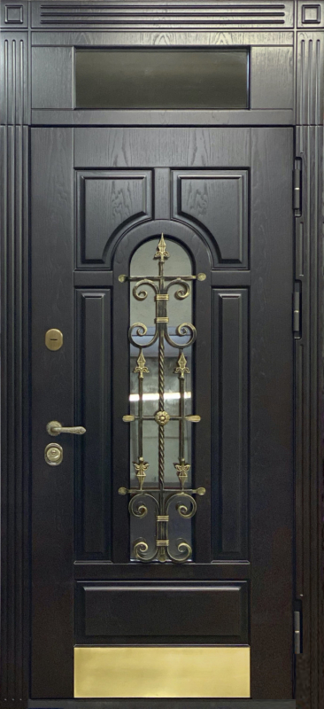 Парадная металлическая дверь с фрамугой №1 — это элегантное и надежное решение для вашего входа. Внешняя и внутренняя отделка из МДФ придает двери не только привлекательный вид, но и устойчивость к внешним повреждениям, что гарантирует долговечность и сохранение первоначального вида. Каркас из профильной трубы и металл толщиной 2 мм обеспечивают прочность и надежность конструкции. Наличие фрамуги позволяет пропускать больше света, создавая ощущение простора. Для дополнительной безопасности предусмотрены блокираторы и замки с тремя ригелями от надежных производителей, таких как Просам и Мосрентген. Варианты отделки, возможность добавления стеклопакетов, зеркала или кованых элементов позволяют адаптировать дверь под любой стиль интерьера. Парадная металлическая дверь с фрамугой №1 от производителя: быстрое изготовление и монтаж в Лыткарино, индивидуальные размеры, широкий выбор материалов и фурнитуры, официальная гарантия до 10 лет.