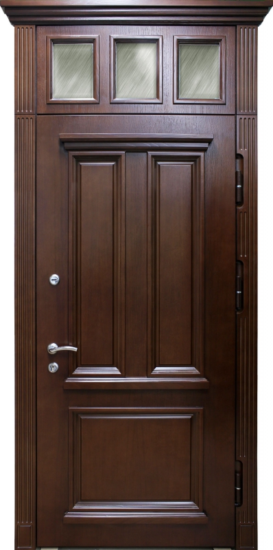 Дверь с сувальдным замком и фрамугой №34 идеально сочетает в себе стиль и надежность. Панель из натурального дерева, использованная как для внешней, так и для внутренней отделки, придает двери благородный и элегантный вид, делая её отличным выбором для помещений с классическим или современным интерьером. Каркас двери выполнен из профильной трубы 50х25 мм и усилен ребрами жесткости, что гарантирует прочность конструкции. Замки от производителей "Просам" и "Мосрентген" с тремя ригелями обеспечивают высокий уровень безопасности. Дверь оснащена уплотнителями с двумя контурами, что гарантирует отличную герметичность, а возможность замены замков и добавления кованых элементов делает её адаптируемой под любые требования. Кроме того, дверь можно дополнить зеркалом, стеклопакетом или видеодомофоном для еще большего комфорта. Входная дверь с сувальдным замком и фрамугой №34 от производителя: быстрое изготовление и монтаж в Лыткарино, индивидуальные размеры, широкий выбор материалов и фурнитуры, официальная гарантия до 10 лет.