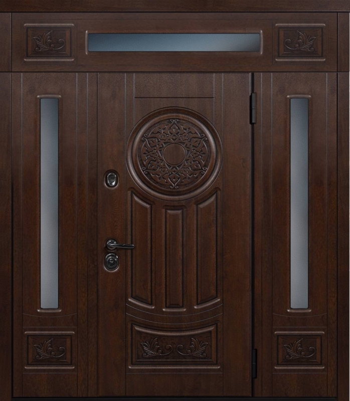 Эта нестандартная парадная дверь с фрамугой №6 — отличный выбор для тех, кто ценит элегантность и долговечность. Внешняя и внутренняя отделка из МДФ придает дверям стильный и современный вид, а также защиту от механических повреждений. МДФ устойчива к царапинам и вмятинам, что делает дверь идеальной для долгосрочной эксплуатации. Каркас из профильной трубы 50х25 мм и лист металла толщиной 2 мм обеспечивают прочность и надежность, а ребра жесткости из профильных труб гарантируют дополнительную устойчивость. В двери установлены блокираторы, два контура уплотнителей из резины, что повышает звуко- и теплоизоляцию. Замки от известных производителей, таких как Просам и Мосрентген, обеспечат надежную защиту. Возможность комбинировать отделку, добавлять зеркало, стеклопакет или кованые элементы позволяет легко адаптировать дверь под любые предпочтения. Нестандартная парадная дверь с фрамугой №6 от производителя: быстрое изготовление и монтаж в Лыткарино, индивидуальные размеры, широкий выбор материалов и фурнитуры, официальная гарантия до 10 лет.
