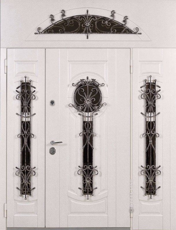 Входная дверь с кованой ручкой и фрамугой №6 представляет собой элегантное и надежное решение для тех, кто ценит не только безопасность, но и стиль. Эта модель идеально подойдет для оформления парадных входов в дома и офисы. Внешняя отделка из плиты МДФ придает двери современный и чистый вид, который сохраняется долго благодаря стойкости к внешним воздействиям. Благодаря профильной трубе с толщиной металла 2 мм и ребрам жесткости, конструкция двери гарантирует прочность и долговечность. Дополнительный элемент — кованая ручка, которая добавляет изысканности и подчеркивает высокий класс изделия. Стандартная комплектация не включает шумо- и теплоизоляцию, однако она может быть установлена по желанию. Резиновый уплотнитель с двумя контурами обеспечит хорошую герметичность, защищая от ветра и пыли. Подходит для установки как в частных домах, так и в офисах, привлекая внимание своим необычным и стильным дизайном. Входная дверь с кованой ручкой и фрамугой №6 от производителя: быстрое изготовление и монтаж в Лыткарино, индивидуальные размеры, широкий выбор материалов и фурнитуры, официальная гарантия до 10 лет.