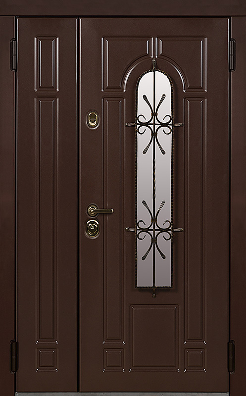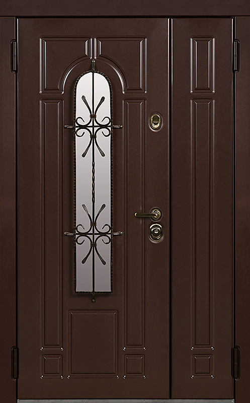 Эта металлическая двухстворчатая дверь с арочным стеклопакетом №15 представляет собой идеальный баланс между эстетикой и прочностью. Арочное стекло добавляет в её дизайн утончённость, а ковка в декоре придаёт изысканный, но в то же время крепкий и надёжный вид. Плита МДФ, используемая как для внешней, так и для внутренней отделки, не только сохраняет прекрасный внешний вид, но и устойчива к механическим повреждениям. Металлическая двухстворчатая дверь с арочным стеклопакетом №15 от производителя: быстрое изготовление и монтаж в Лыткарино, индивидуальные размеры, широкий выбор материалов и фурнитуры, официальная гарантия до 10 лет.