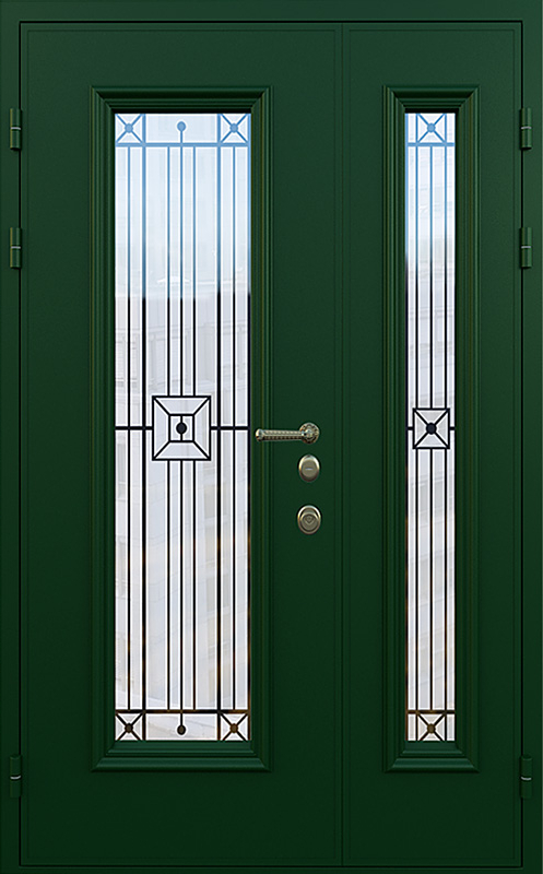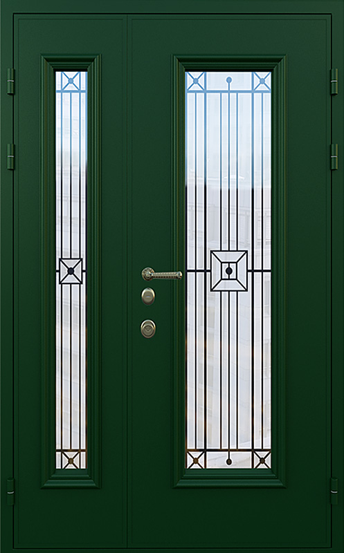 Зеленая полуторная дверь со стеклопакетом для частного дома №18 — это идеальный выбор для тех, кто хочет добавить в свой дом надежность и стиль. Элементы декора, такие как багет и ковка, придают двери элегантный вид, который идеально гармонирует с фасадом загородного дома. Панели МДФ с ПВХ-покрытием, использованные для внешней и внутренней отделки, обеспечивают высокую стойкость к механическим повреждениям и внешним воздействиям, сохраняя прекрасный внешний вид на долгое время. Зеленая полуторная дверь со стеклопакетом для частного дома №18 от производителя: быстрое изготовление и монтаж в Лыткарино, индивидуальные размеры, широкий выбор материалов и фурнитуры, официальная гарантия до 10 лет.