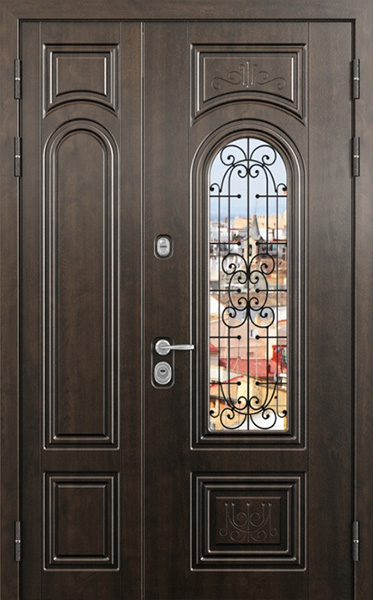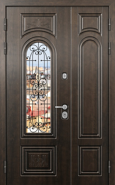Двупольная стальная дверь со стеклопакетом и кованым узором №24 станет отличным выбором для тех, кто ценит не только безопасность, но и стиль. Внешняя и внутренняя отделка выполнены из МДФ, что придает двери элегантный и современный вид, а также обеспечивает высокую устойчивость к механическим повреждениям и износу. Стеклопакет и кованые элементы добавляют изысканности и уникальности, при этом сохраняя прочность конструкции. Двупольная стальная дверь со стеклопакетом и кованым узором №24 от производителя: быстрое изготовление и монтаж в Лыткарино, индивидуальные размеры, широкий выбор материалов и фурнитуры, официальная гарантия до 10 лет.