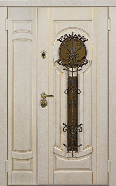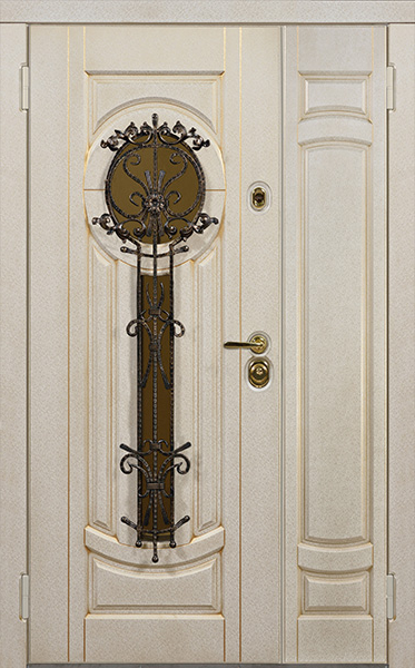 Двухстворчатая парадная дверь с ковкой и стеклом белая №30 — это сочетание красоты и надёжности. Конструкция из профильной трубы 50х25 мм и металлического листа толщиной 2 мм обеспечивает долговечность и стойкость к внешним воздействиям. Элементы ковки придают двери изысканный вид, а стеклопакет позволяет создать атмосферу лёгкости и прозрачности. Внешняя и внутренняя отделка выполнены из плиты МДФ, что делает дверь не только привлекательной, но и устойчивой к механическим повреждениям. Для дополнительной герметичности используются уплотнители с двумя контурами, а блокираторы обеспечат безопасность. Вариативность размеров и возможность добавления дополнительных опций, таких как шумо- и теплоизоляция, делают эту модель универсальной для установки в любом интерьере. Двухстворчатая парадная дверь с ковкой и стеклом белая №30 от производителя: быстрое изготовление и монтаж в Лыткарино, индивидуальные размеры, широкий выбор материалов и фурнитуры, официальная гарантия до 10 лет.