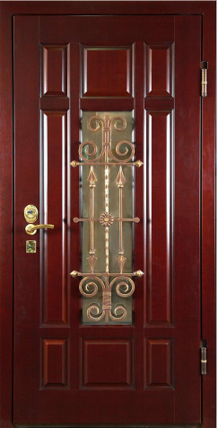 Входная металлическая дверь с порошковым покрытием стеклом и ковкой в частный дом №27