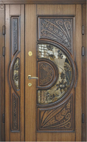 Входная дверь со стеклопакетом и патиной для загородного дома белая №29