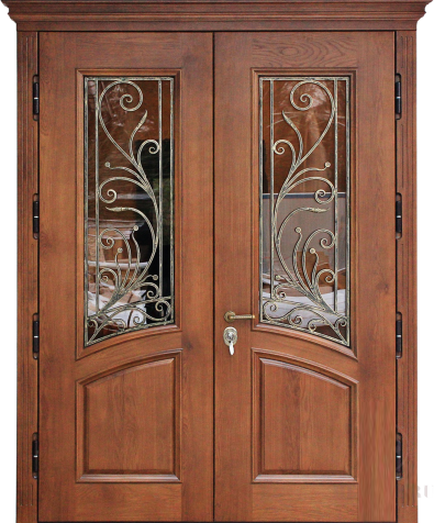 Двухстворчатая дверь со вставками и ковкой №2