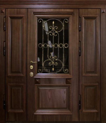 Входная металлическая дверь с порошковым покрытием, стеклом и ковкой в частный дом №27 — это не только надежность, но и стильное решение для вашего коттеджа или частного дома. Массив дерева, использованный в отделке снаружи и внутри, придаёт двери тепло и элегантность, в то время как прочная металлическая конструкция с профильной трубой и листом металла толщиной 2 мм обеспечивает долговечность и защиту. Стекло и кованые элементы добавляют изысканности, а порошковое покрытие защищает от внешних воздействий, сохраняя первоначальный вид. Терморазрыв в коробке и полотне помогает минимизировать теплопотери, а эффективная система уплотнения с двумя контурами гарантирует уют и тишину в вашем доме. Входная металлическая дверь с порошковым покрытием стеклом и ковкой в частный дом №27 от производителя: быстрое изготовление и монтаж в Лыткарино, индивидуальные размеры, широкий выбор материалов и фурнитуры, официальная гарантия до 10 лет.